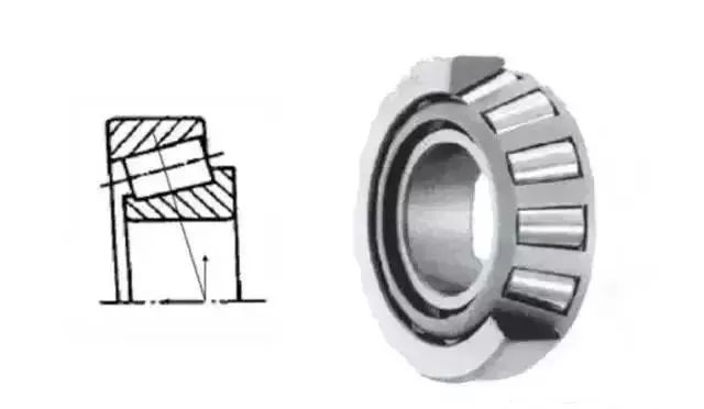 This type of bearing is equipped with truncated cone-shaped rollers. The rollers are guided by the large ribs of the inner ring. They are designed so that the apexes of the conical surfaces of the inner ring raceway surface, outer ring raceway surface and roller rolling surface intersect at the center line of the bearing. On point. Single-row bearings can bear radial loads and one-way axial loads, while double-row bearings can bear radial loads and two-way axial loads, and are suitable for bearing heavy loads and impact loads.