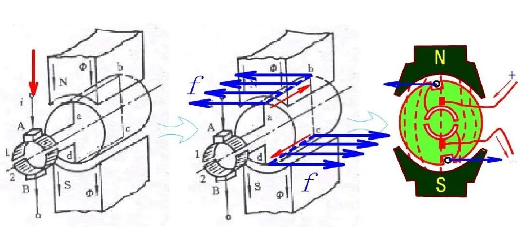 The picture below is a simple working principle model of a permanent magnet DC motor. Two permanent magnets generate a magnetic field at the central coil. The coil is passed through current, and the electromagnetic force (left-hand rule) is generated by the magnetic field, which then rotates. The motor The rotating part is called the rotor, and the non-moving part is called the stator. Obviously, the permanent magnet in the picture below belongs to the stator, and the coil belongs to the rotor.