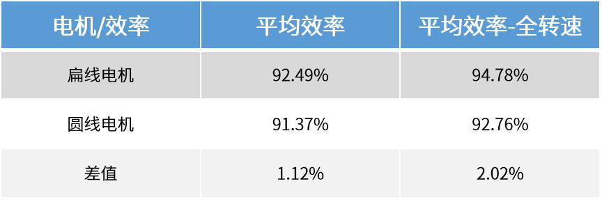 Chart 1 Efficiency comparison between flat wire motor and round wire motor