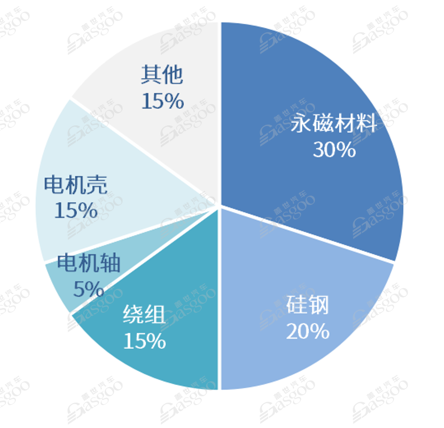 Among the costs of permanent magnet synchronous motors, the cost of permanent magnet materials accounts for the highest proportion. The raw materials for manufacturing permanent magnet synchronous motors mainly include neodymium iron boron, silicon steel sheets, copper and aluminum. Among them, the permanent magnet material neodymium iron boron is mainly used to manufacture rotor permanent magnets, and the cost composition is about 30%; silicon steel sheets are mainly used to make customized The cost composition of the rotor core is about 20%; the cost composition of the stator winding is about 15%; the cost composition of the motor shaft is about 5%; and the cost composition of the motor shell is about 15%.