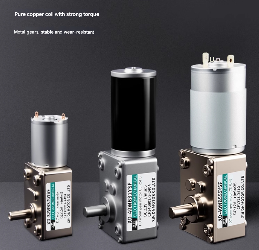 370/555 micro worm gear motor DC deceleration forward and reverse speed regulation right angle with self-locking motor
