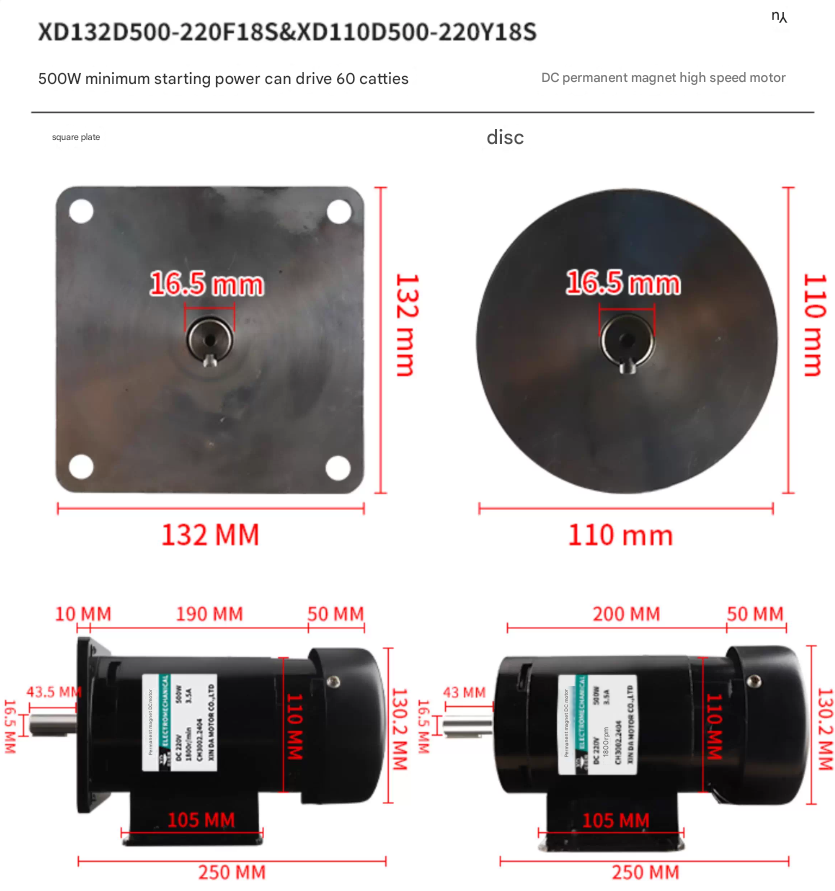 ZYC-110-11 Xinda 500W permanent magnet DC motor 1800 rpm small 220V speed regulation high speed exhaust fan large power motor