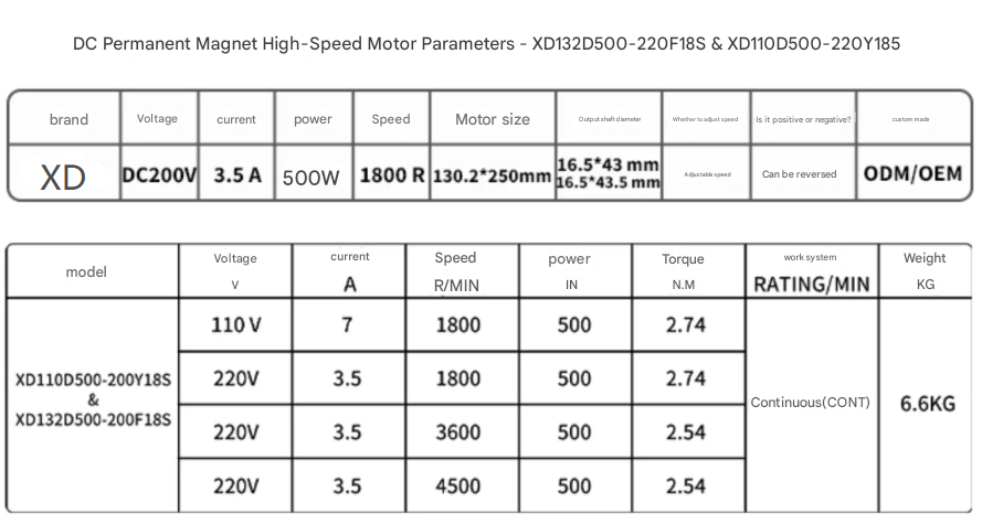 Xinda 500W permanent magnet DC motor ZYC-110-11 webpage: