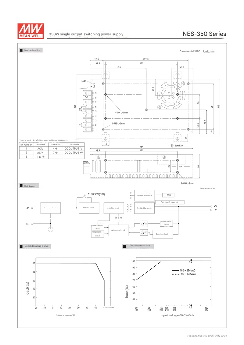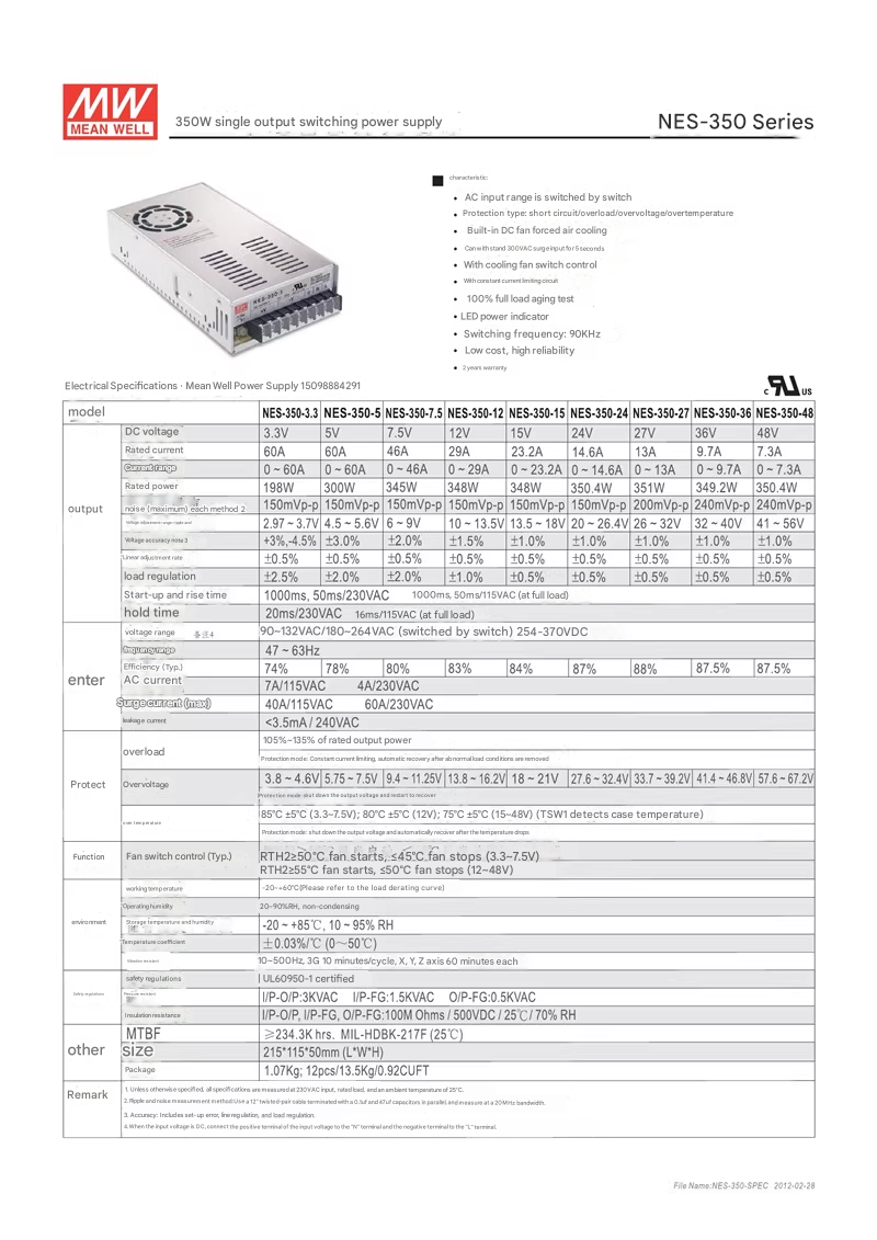 Model: NES-350-24 (24V 14.6A) 350W switch power supply webpage: