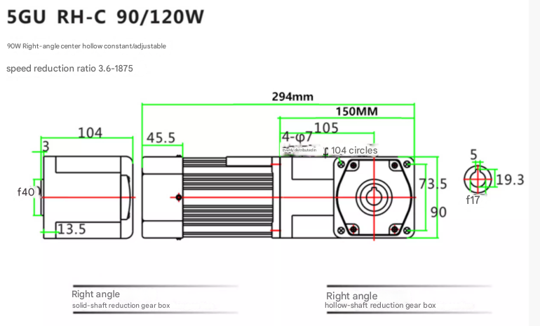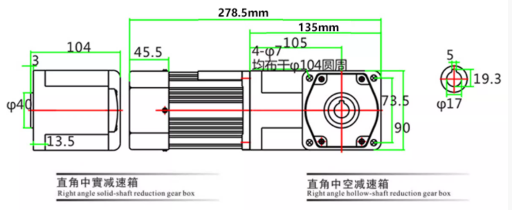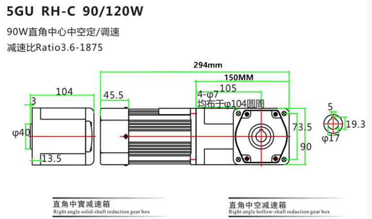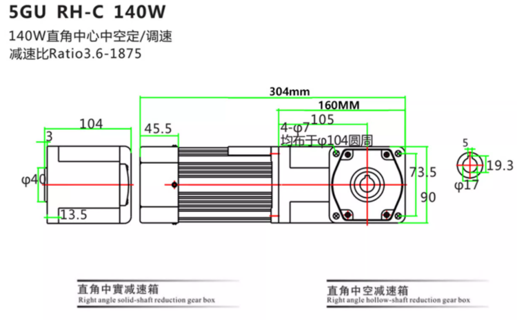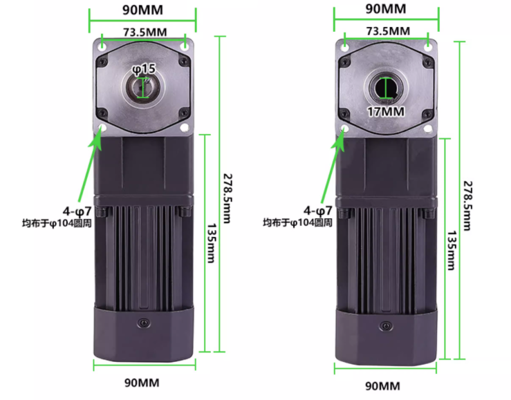 Hollow shaft solid shaft right-angle geared motor, 220V, with brake, 400W-750W, 1.5kW, three-phase frequency conversion speed control motor