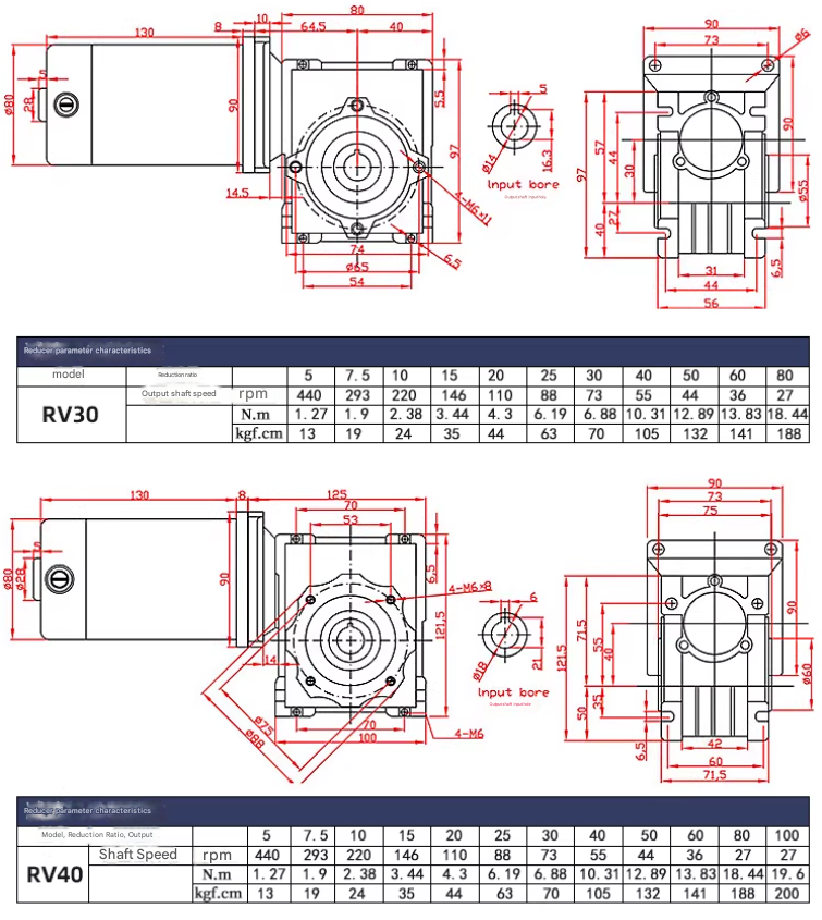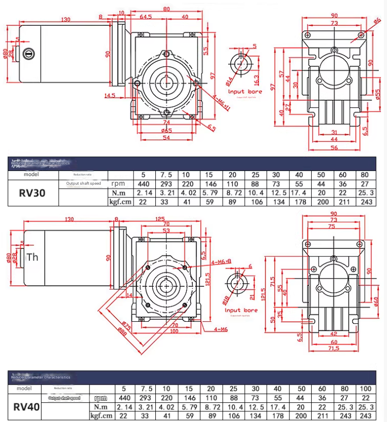 RV worm gear reducer motor RV30RV40 DC 12V24V lowslow speed right angle 90° gearbox