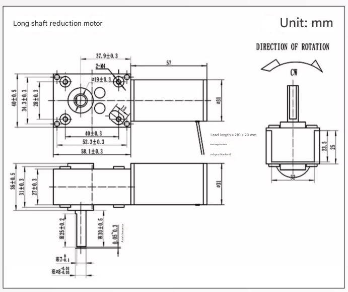40WB-31YSF DC geared motor with worm gear, 12V24V, self locking, miniature low speed motor