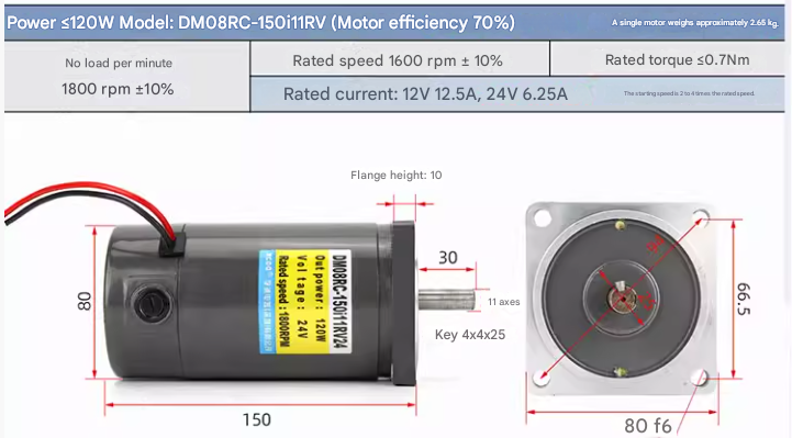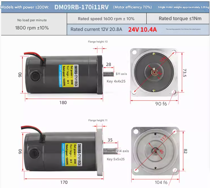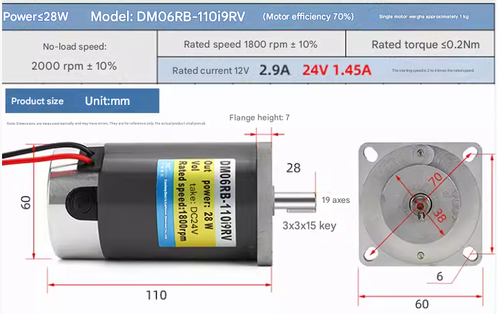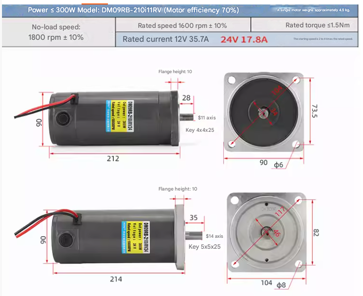 Keyed brushed DC motor 28W~800W 12V24V48V high speed forward and reverse permanent magnet motor