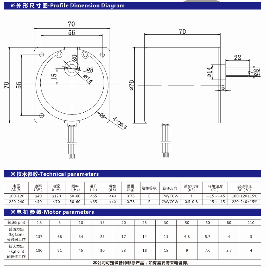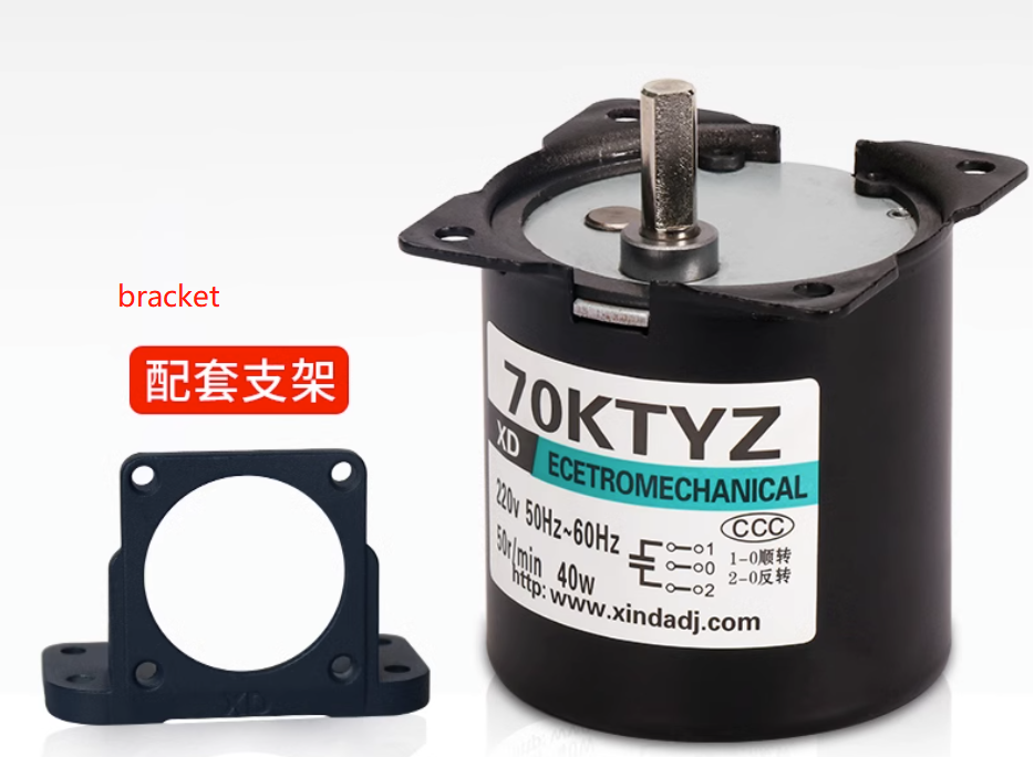 These motors are synchronous motors (type KTYZ), fixed speed (no speed adjustment, the motor supports forward and reverse rotation, synchronous motors have various models, 49KTYZ, 50KTYZ, 60KTYZ, 68KTYZ, 70KTYZ, 80KTYZ (the number represents the seat number) The larger the seat number, the greater the power of the motor, the greater the weight can be driven. Voltage: 220V. customization, bulk can contact customer service: Lukim Liu +86 18606382728, email: sales@xdmotor.tech