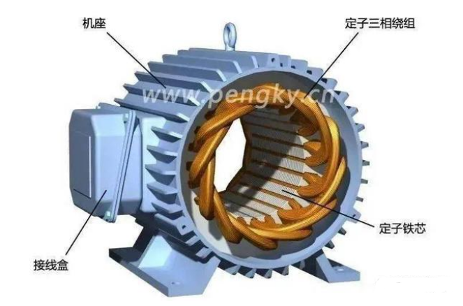 Stator (Stat or ): The stator is the stationary part of the motor and consists of an iron core and windings. The winding of the stator is usually composed of several phase coils, and each coil contains several turns of wires to generate a rotating magnetic field.