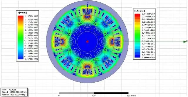 In addition to replacing silicon steel sheets, magnetic flux leakage can also be avoided by optimizing magnetic lines of force. Looking at the picture below, we can see that a small number of magnetic field lines deviate from the normal path. This is what we generally call magnetic flux leakage. This phenomenon may cause the motor's torque to decrease and may even produce electromagnetic interference.