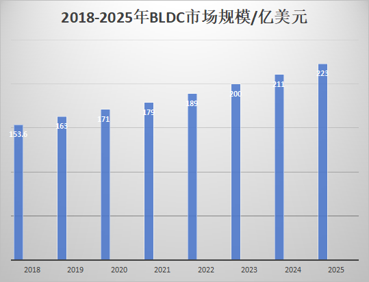 According to data from market research company Grand View Research, the market size of BLDC motors will reach US$189 billion in 2022 and is expected to grow to US$223 billion by 2025, with a compound annual growth rate of 5.7%. China's BLDC motor market is expected to grow at an average annual rate of 15% from 2018 to 2023, exceeding the global average.
