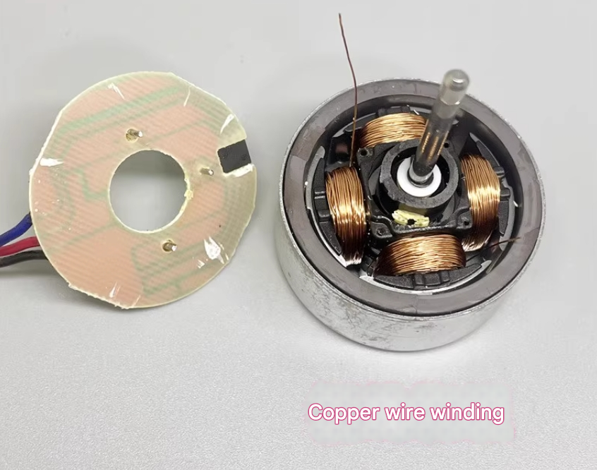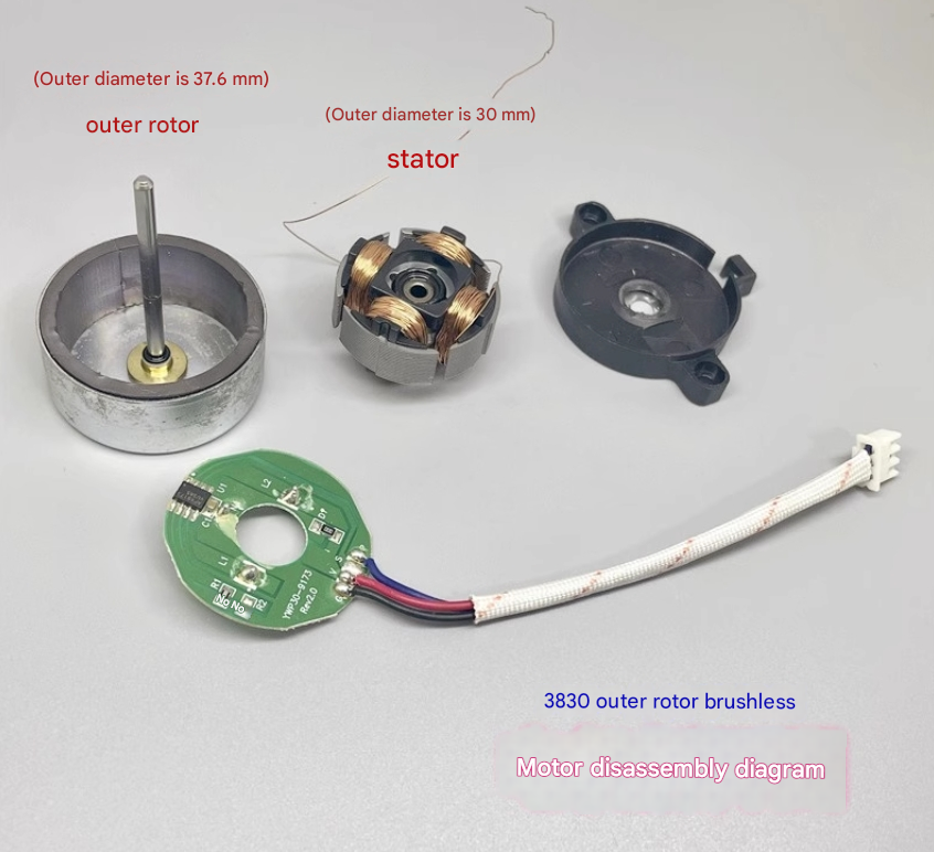 The motor's metal casing and shaft are connected together. When powered, they rotate synchronously, which is the outer rotor.
