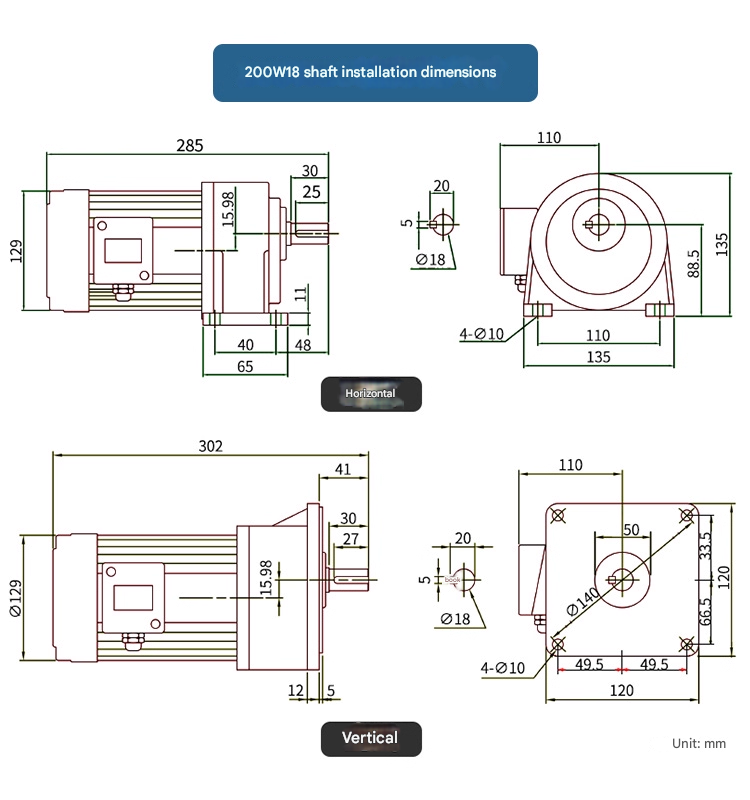 2200W (5-120 speed ratio) shaft 40+ with brake