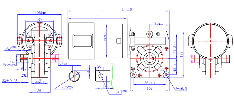 The 90ZYJ08 DC permanent magnet geared motor consists of a DC permanent magnet motor and a worm gear reducer. Its features include compact structure, small size, high power, smooth operation, low noise, and reversible rotation. It is suitable as a drive element in drive systems and as an actuator in control systems, such as in recreational vehicles, woodworking machinery, and lifting devices .