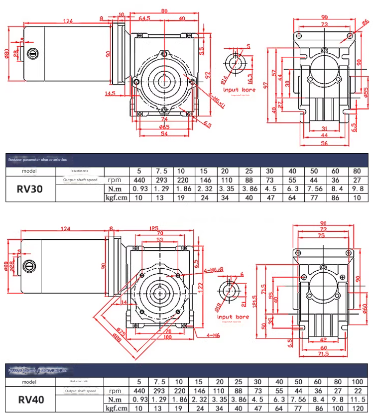 RV worm gear reducer motor RV30RV40 DC 12V24V lowslow speed right angle 90° gearbox