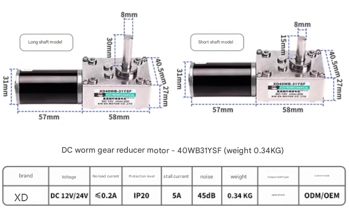 40WB-31YSF DC geared motor with worm gear, 12V24V, self locking, miniature low speed motor