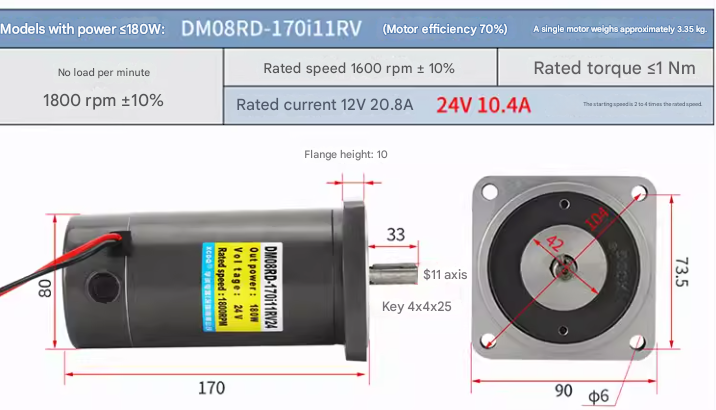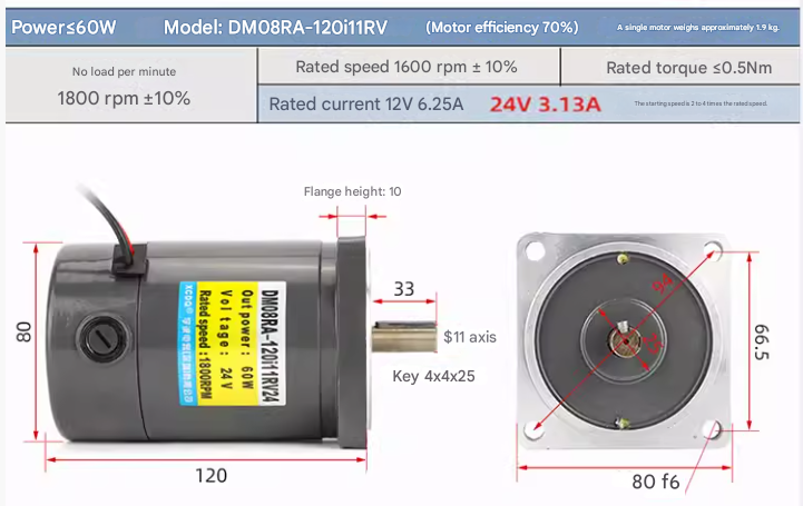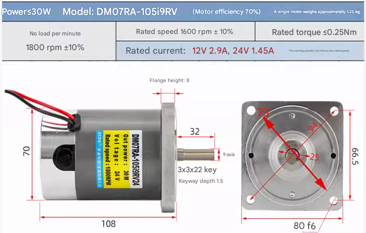 Keyed brushed DC motor 28W~800W 12V24V48V high speed forward and reverse permanent magnet motor