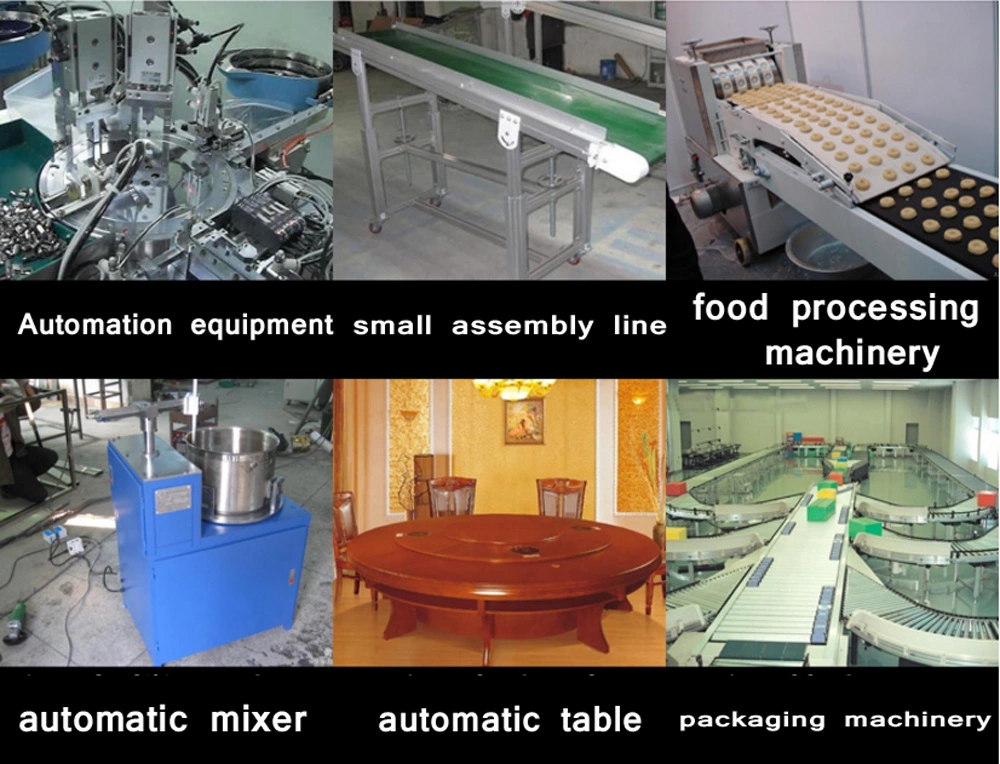 Automated machinery, small assembly lines, food machinery, automatic mixers, automatic dining tables, packaging machinery etc.
